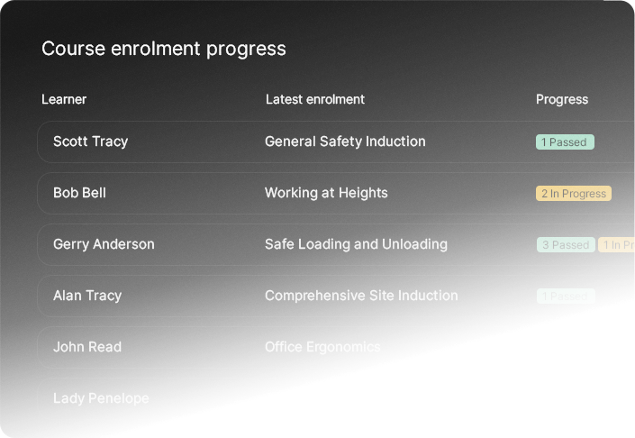 Intuitive administration tools and dashboards ensure you know where your people are up to in their training in real time, including detailed SCORM activity.
