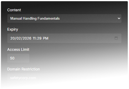Configure expiry dates, user limits and domain restrictions to ensure the content is accessed in line with agreements.